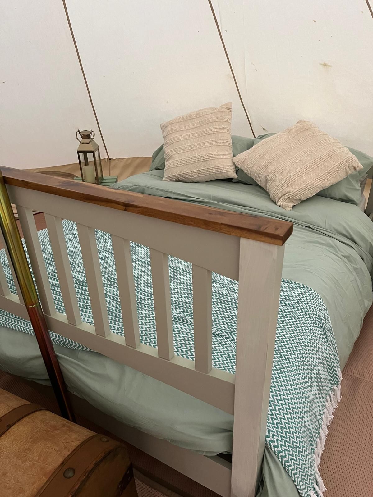 We offer a beautiful bell tent fitted with luxuries for a unique night away.